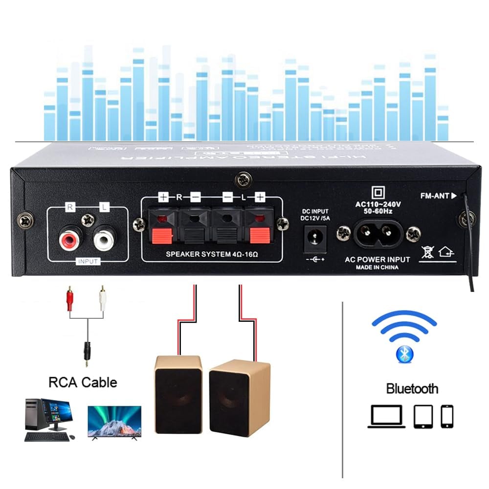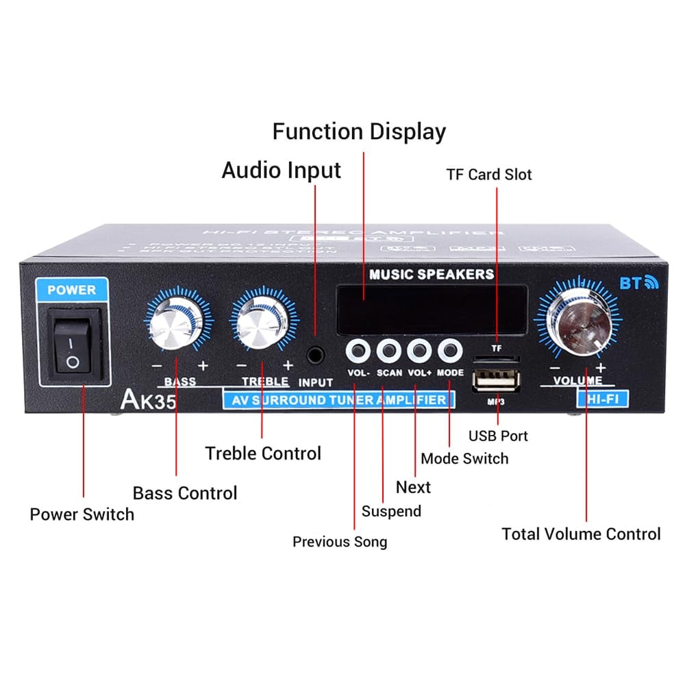 Meet the Woopker AK35 Bluetooth 5.0 Stereo Amplifier – your compact powerhouse for immersive, high-fidelity audio. With 200W + 200W max output power, this 2.0-channel amp drives most home speakers with clean, delicate sound—no audible noise even at high volumes. Featuring Bluetooth 5.0, FM radio, USB playback, SD card reader, and full remote control, it's the ultimate hub for your home audio system. Whether you're upgrading your TV sound, building a stereo setup, or enjoying music from any source, the AK35 delivers professional-grade performance in a mini-sized package. 🎛️